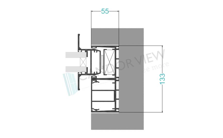 GlazingThe system can integrate glazed used from 12mm to 38mm thick glass. Glass blocking must be done through internal/external gaskets in EPDM. The possible infiltration water must be drained outwards, as in the system.